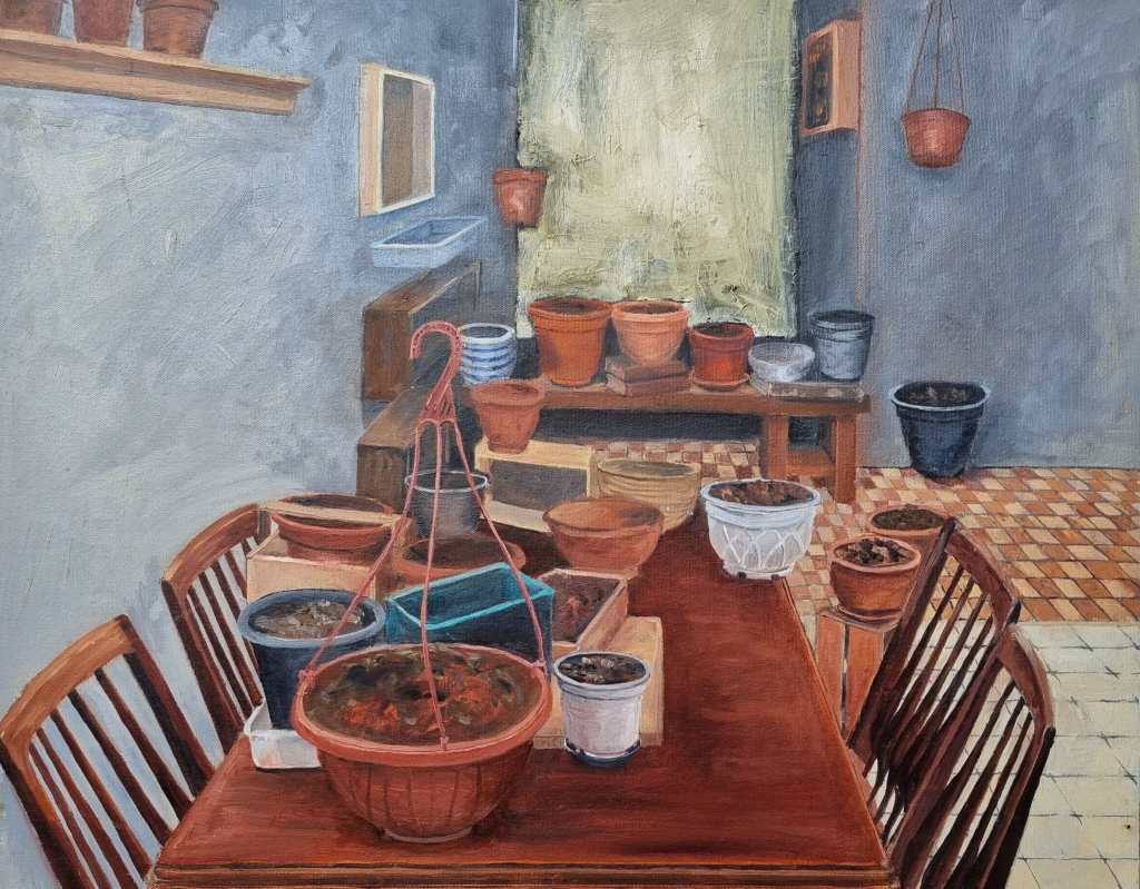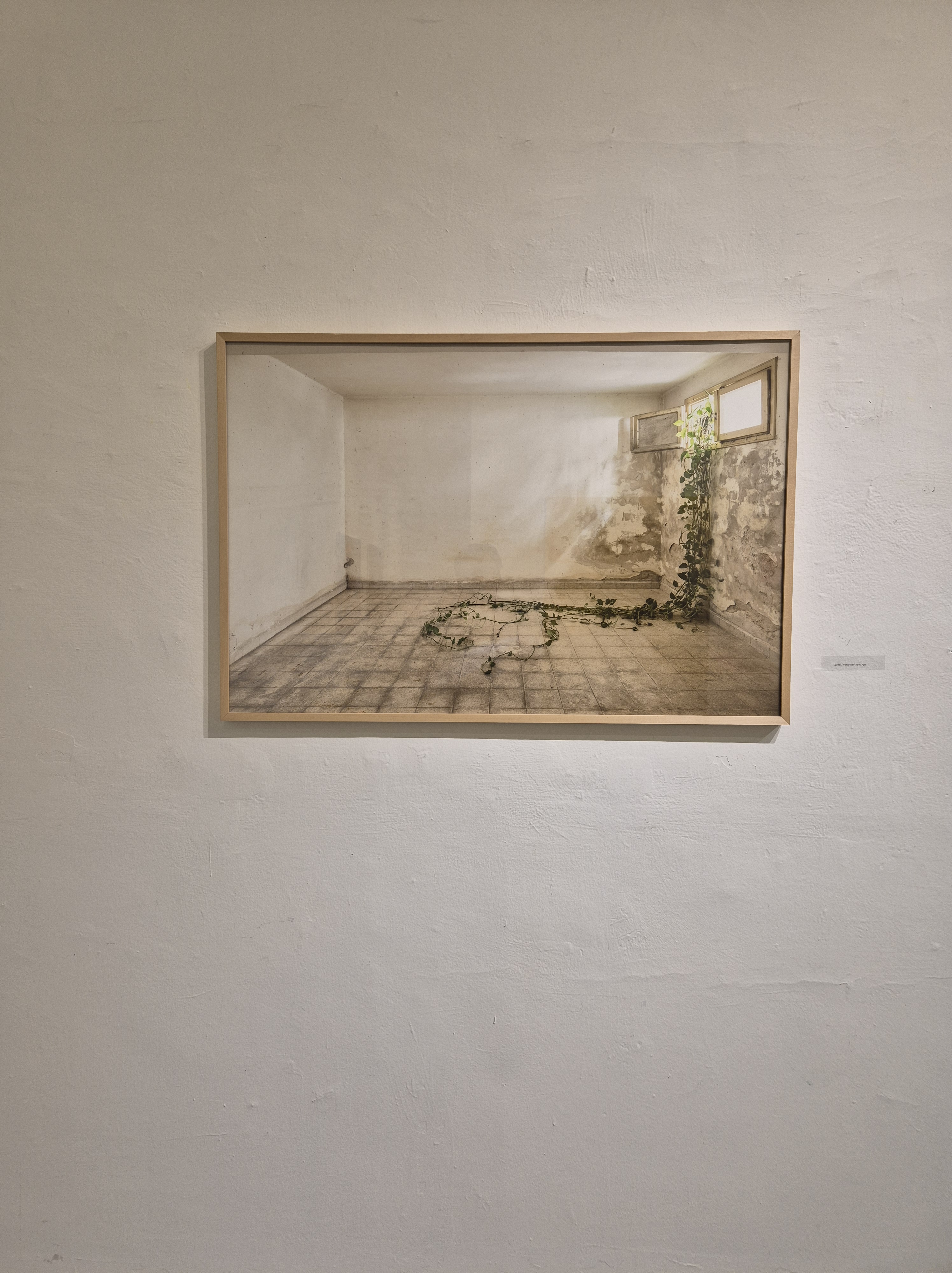 בעבודה השנייה צמח הפוטוס, שקל מאוד לטפח אותו ולא צריך אור מים רבים, יוצר אקט של השתלטות על מרחב המרתף, ומעין עיגול או הילה על הרצפה. בצילום נוצרים משחקי אור המגיע מן החלון ומאיר את החלל אך גם את פגעי הזמן בקיר וברצפה.[19]