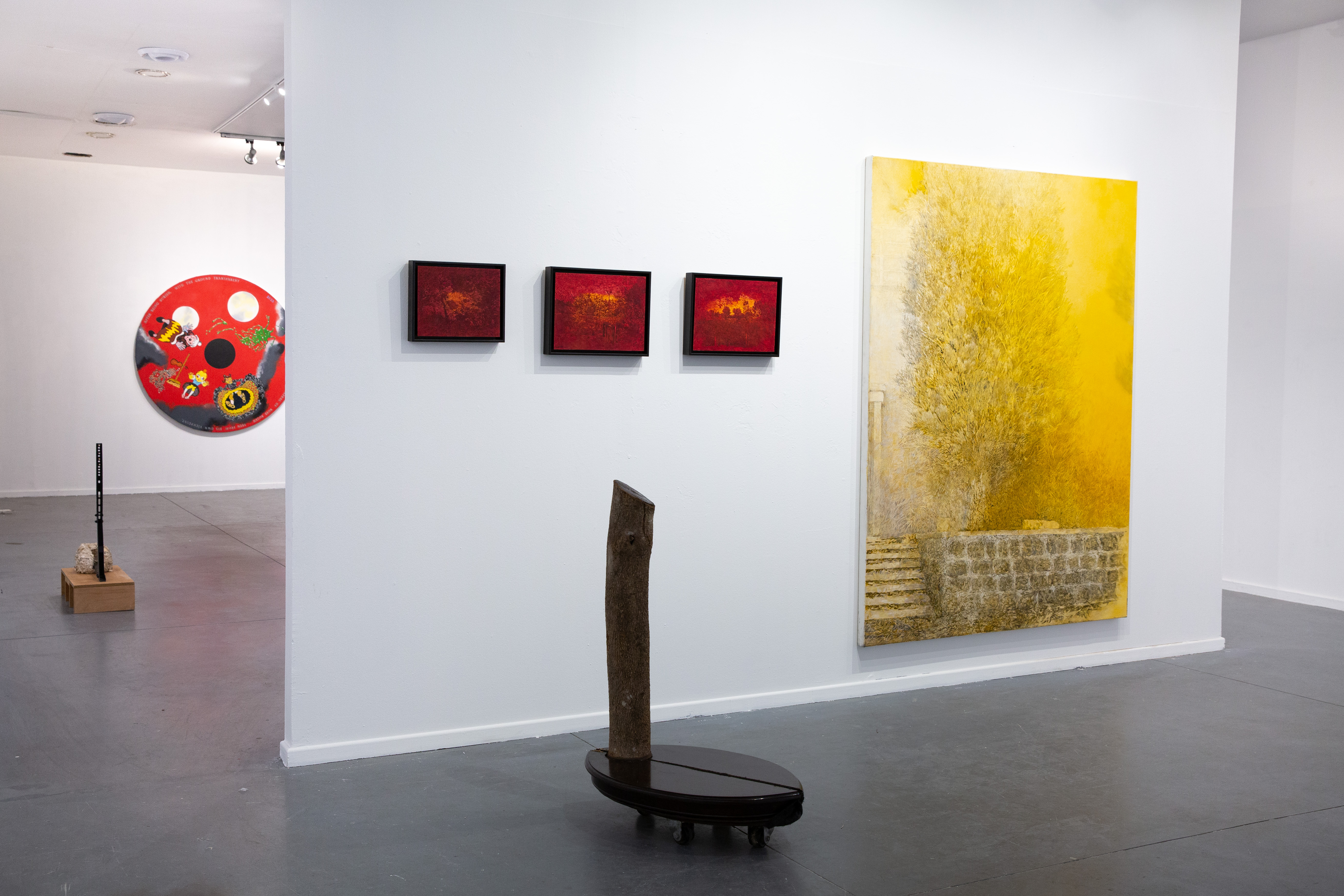 דבורה מורג בתערוכה מוצגים שלושה ציורים ועבודת פיסול.