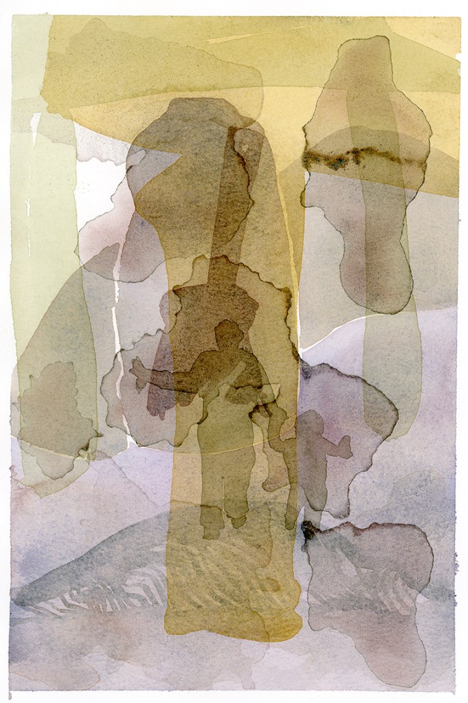 פסי גירש שתי העבודות של פסי גירש המוצגות בתערוכה נעשו בשנים 2016 ו-2017 בתקופה בה עבדה בחלל מרתף בו הרגישה שהינו המקום "להיות עם עצמה", מעין סוג של רחם, שקט, ללא הסחות דעת, מוסיקה או אוכל. היא יצרה בו אימפרוביזציות אינטואיטיביות שהניבו בין השאר את העבודות – האם הנושאת את עוללה אל על ודימוי המרתף עם הצמח המשתלט על המרחב שלו.