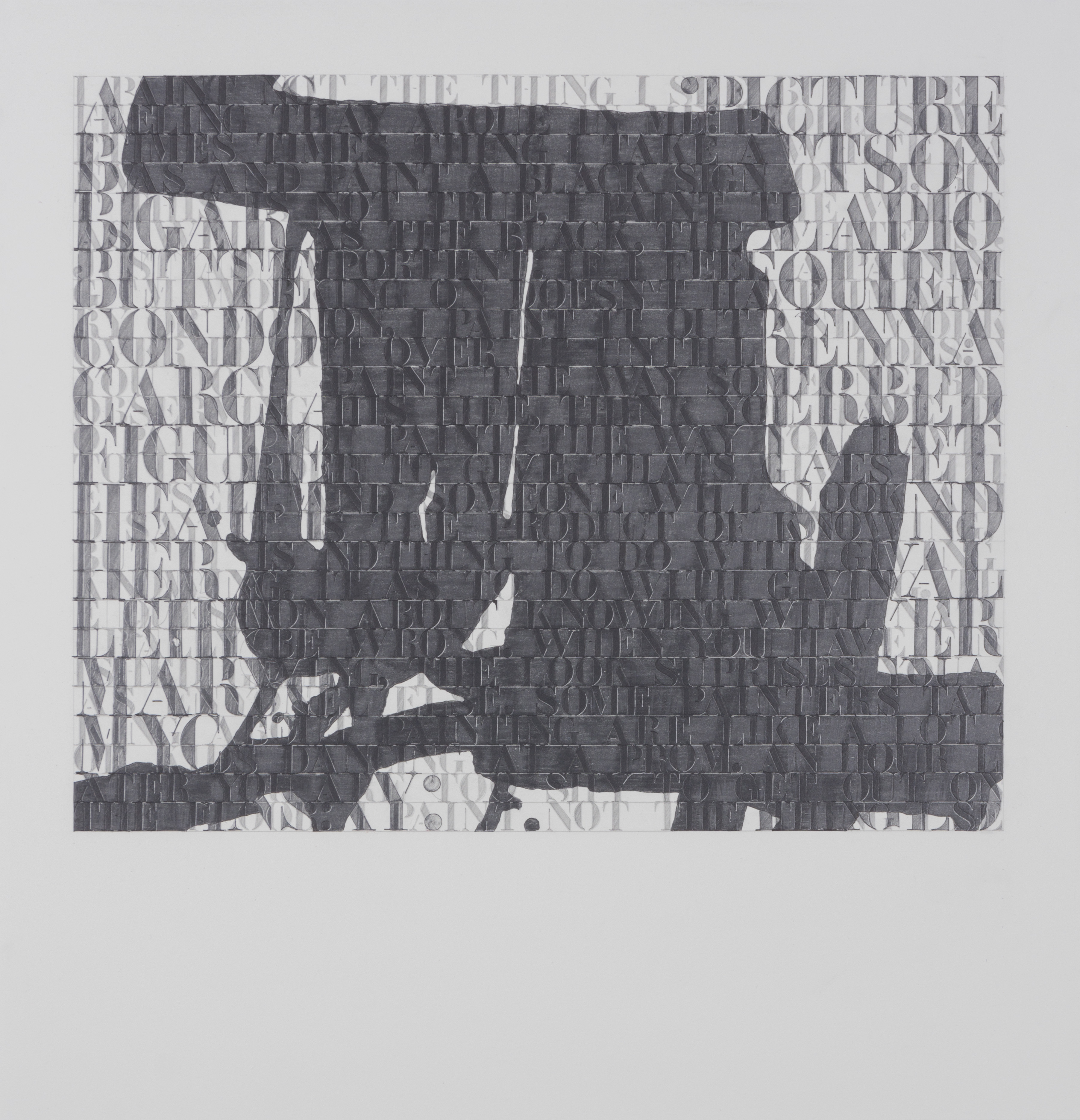 מיכל בלייר בתערוכה מוצגות שלוש עבודות שלה: עבודות טקסט, 2018; ציור, 2021; תחריט, 2014.