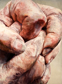 ידיים – בציור זה המבט של האמנית הוא אל הבשרניות של הידיים, העור, הוורידים והציפורניים. זהו ציור חושני וחומרי מאוד והאצבעות נדמות לעין המתבונן (עיני שלי) לאיברים בגוף.