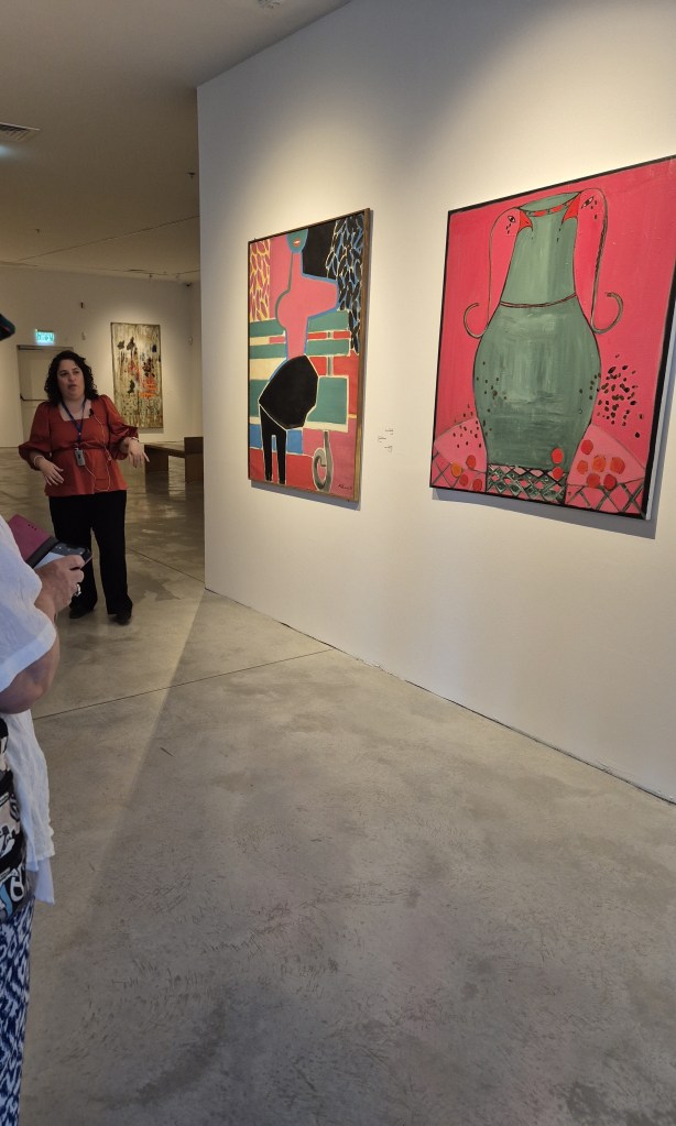 שרי גולן האוצרת הראשית ואוצרת התערוכה, סיפרה בפגישה עמה בתערוכה על רציונל האוצרות. באוסף המוצג לראשונה, נבחרו חלק מהעבודות. גולן ויתרה על שמות מוכרים על-מנת להראות בחירות אמיצות, ובדומה, מוצגים גם אמנים דרוזים ופלשתינאים.