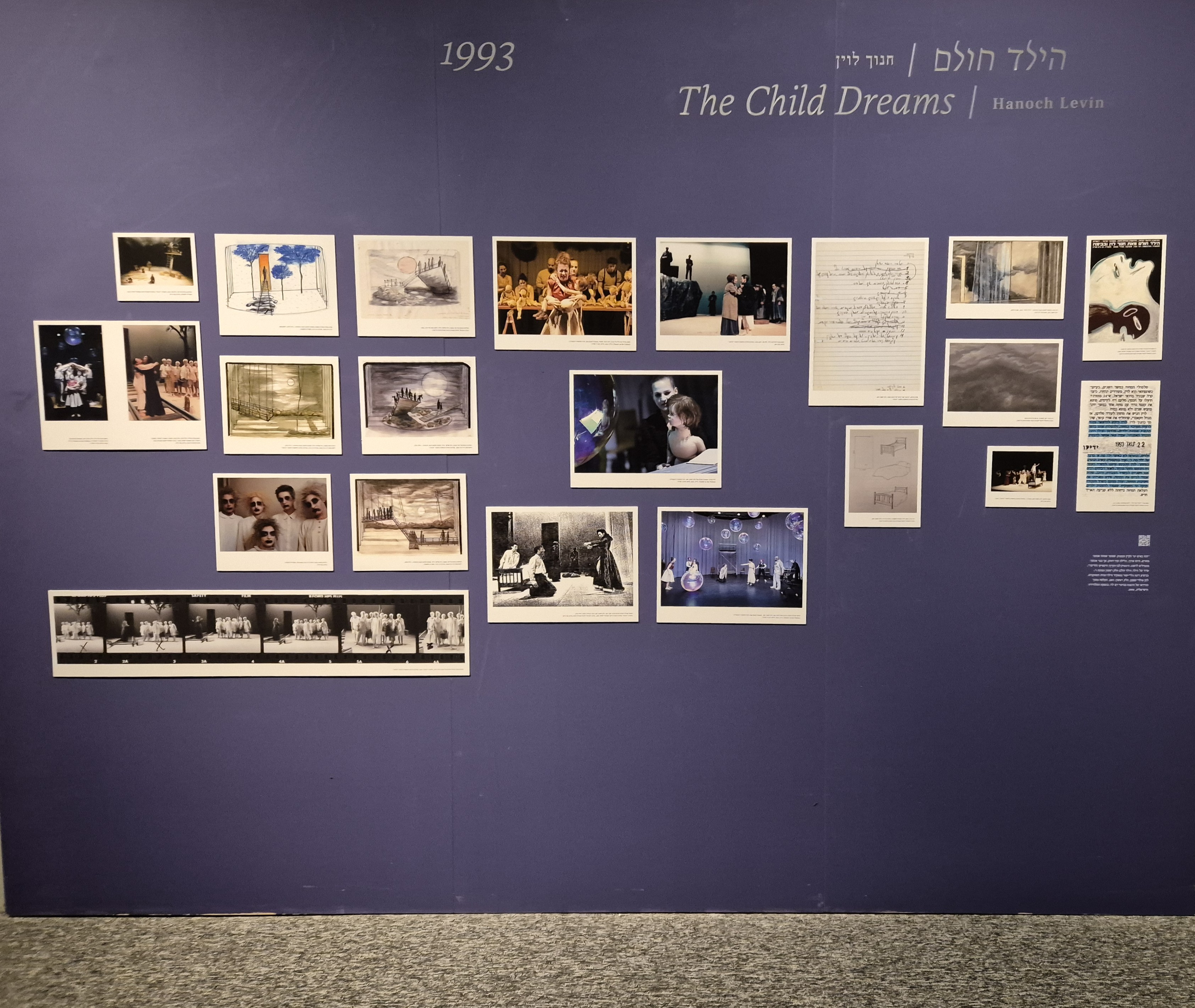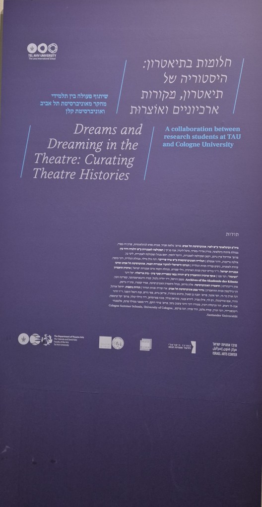 בטקסט התערוכה מצוין: "התיאטרון הוא מרחב לדמיון וחלימה קולקטיביים. בעוד שחלומות אינדיבידואליים מציגים חזיונות אישיים, חלומות בתיאטרון שהנם בעלי ממד חומרי, קולי וחזותי, מפעילים את הדמיון הקולקטיבי ומהווים מכניזם שלוקח חלק בגיבוש תפישת המציאות בזמן ומקום נתונים. כמו החלום, כך גם האירוע התיאטרוני הוא ארעי. מקורות ארכיוניים של תיאטרון מספקים לנו הצצה אל העבר, כשהם משמרים שרידים ממופעים שחלפו ומשמשים גם כעדויות לתהליכי יצירה, תכנון, עיצוב והתקבלות של הצגות".[3] וכאן עולה בדעתי הפילוסוף פול ריקר (Paul Ricœur) המתייחס אל העבר אשר אינו עוד נגיש בעבורנו, אלא באמצעות העֲקֵבוֹת (עקיבותיו); שכן רק באמצעות העקיבות יש באפשרותנו לנסות לייצג את העבר בזיכרון פרטי או קולקטיבי. [4]