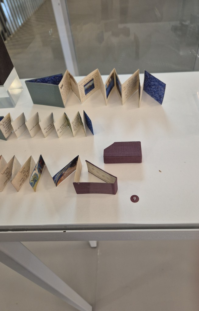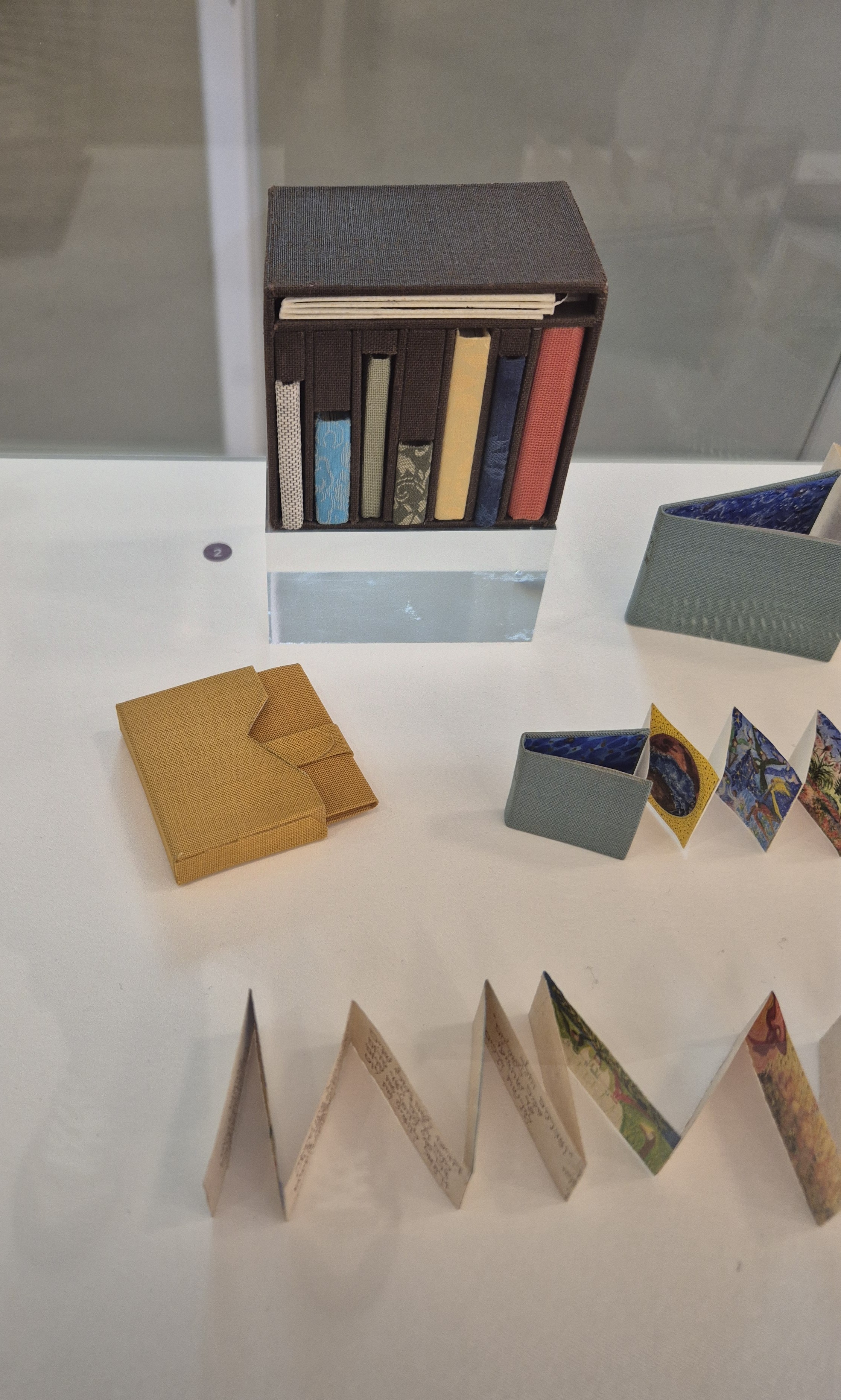 התצוגה מציעה מבטים וטכניקות אמנותיות הכוללות התייחסויות לכריכה אמנותית: מיצבים העוסקים בספר המיניאטורי וספרים שהם אובייקטים אמנותיים, קרי, המדיום הוא הספר. לצידם ספרי אמן המטופלים וכרוכים ביד בשיטות מסורתיות, ספרים העשויים בהדפס אמנותי במהדורות מצומצמות בנות מספר עותקים, וספרים בהדפסה מסחרית. ומאחר והינם פרי יצירת האמן/ית, הם מוגדרים כיצירת אמנות.